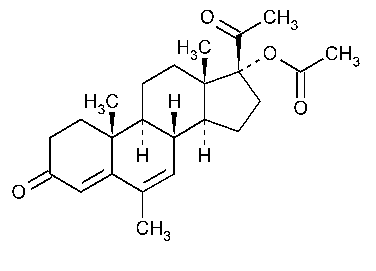 Pregna-4,6-diene-3,20-dione,17-(acetyloxy)-6-methyl-. 17-Hydroxy-6-methylpregna-4,6-diene-3,20-dione acetate [595-33-5]. »Megestrol Acetate contains not less than 97.0percent and not more than 103.0percent of C24H32O4,calculated on the anhydrous basis.
